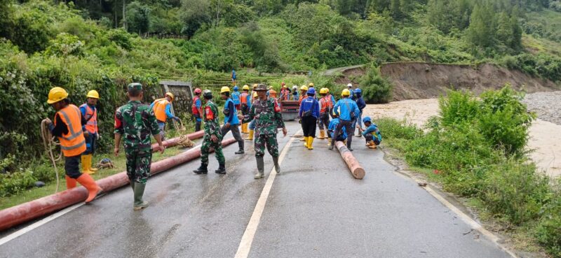 Meski medan licin dan berlumpur, semangat gotong royong tak surut. Pelda Firdaus terlihat memimpin langsung koordinasi di lapangan, membantu proses pengumpulan, pemindahan, hingga penataan tiang listrik ke lokasi yang lebih aman. Warga desa pun ikut terlibat, menunjukkan kepedulian bersama demi keselamatan lingkungan dan kelancaran aktivitas sehari-hari.