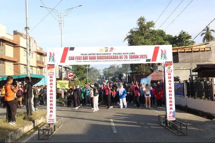 Blangkejeren – Dalam rangka memperingati Hari Bhayangkara ke-79 yang jatuh pada tanggal 1 Juli 2025 mendatang, Kepolisian Resor (Polres) Gayo Lues menyelenggarakan kegiatan Car Free Day (CFD) pada Minggu pagi, 22 Juni 2025. Kegiatan ini berlangsung dengan meriah dan penuh semangat kebersamaan di Jalan Brigjen Pol. Ridwan Karim No. 02, Kecamatan Blangkejeren, Kabupaten Gayo Lues.