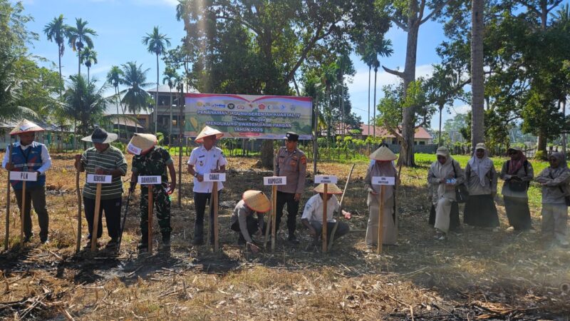 Bireuen, InfoAcehNews.net | Dalam upaya mendukung program pemerintah menuju swasembada pangan nasional, Polsek Samalanga bersama unsur Muspika dan masyarakat melaksanakan penanaman jagung serentak kuartal IV di lahan masyarakat binaannya di Desa Jok, Kecamatan Samalanga, Rabu (8/10/2025).