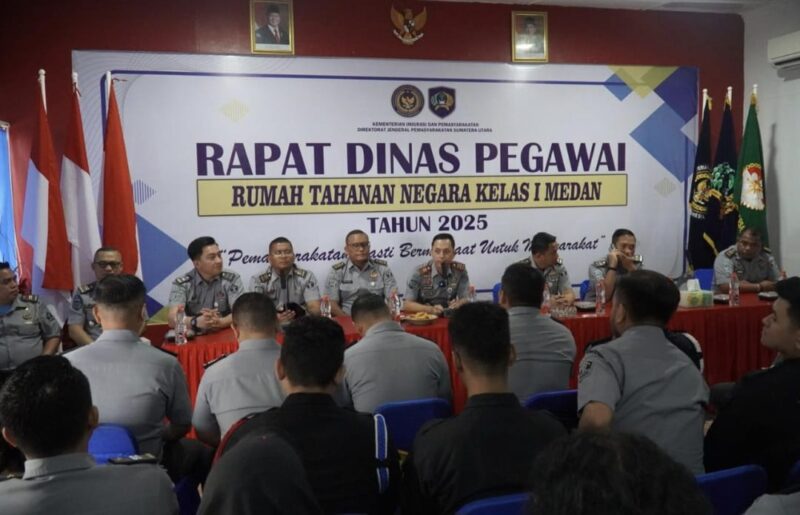 Bertempat di Aula Muladi, Rapat dinas dipimpin langsung oleh Kepala Rutan Kelas I Medan, Andi Surya. Dalam arahannya Karutan menyampaikan beberapa hal penting yang harus menjadi perhatian dan tindak lanjut seluruh jajaran seperti Pelaksanaan Penggeledahan Rutin, Penempatan Wbp Berdasarkan Tingkat Resiko, Akreditasi Klinik Rutan, Menjaga Kebersihan Dapur dan Alat Masak, Pembinaan Kepribadian dan Keagamaan oleh Subsi BHPT, Serta Ketahanan Pangan dan Inovasi Pembinaan.